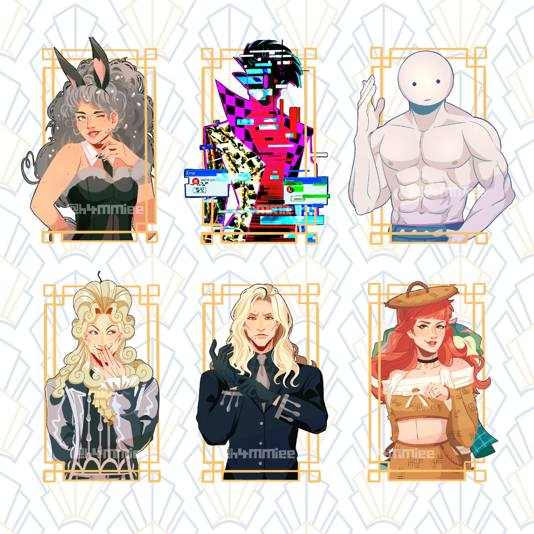 3" double sided keychains featuring a heart-shaped clasp (colored to match the character)! Both sides have epoxy, so please be gentle with them.